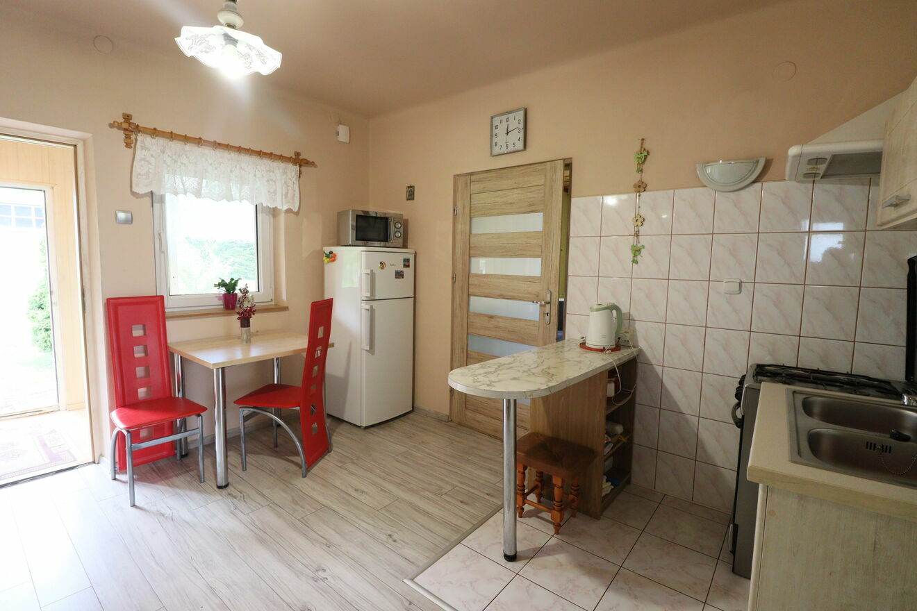 Stan budynku- dobry, ogrzewany węglem, dostęp do gazu, prądu, wody miejskiej oraz własnej studni (dwie opcje), szambo. Dom w pełni umeblowany, meble, pralka, lodówka, kuchenka z piekarnikiem. Do dyspozycji Najemców kosiarka oraz niezbędne narzędzia.